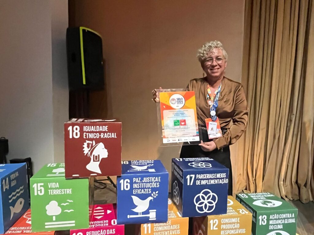 A Fits foi representada pela professora Alicely Araújo, Coordenadora de Pesquisa e Extensão da instituição, que recebeu a honraria. O reconhecimento nacional evidenciou o papel da educação na promoção de um futuro sustentável, reafirmando o compromisso da Fits com práticas de ensino, pesquisa e extensão voltadas para a transformação social. “Foi uma emoção ímpar e singular. Um momento único, de celebração dessa grande conquista e transmissão da importância da sustentabilidade para nossos estudantes, profissionais e comunidade”, comenta Alicely.